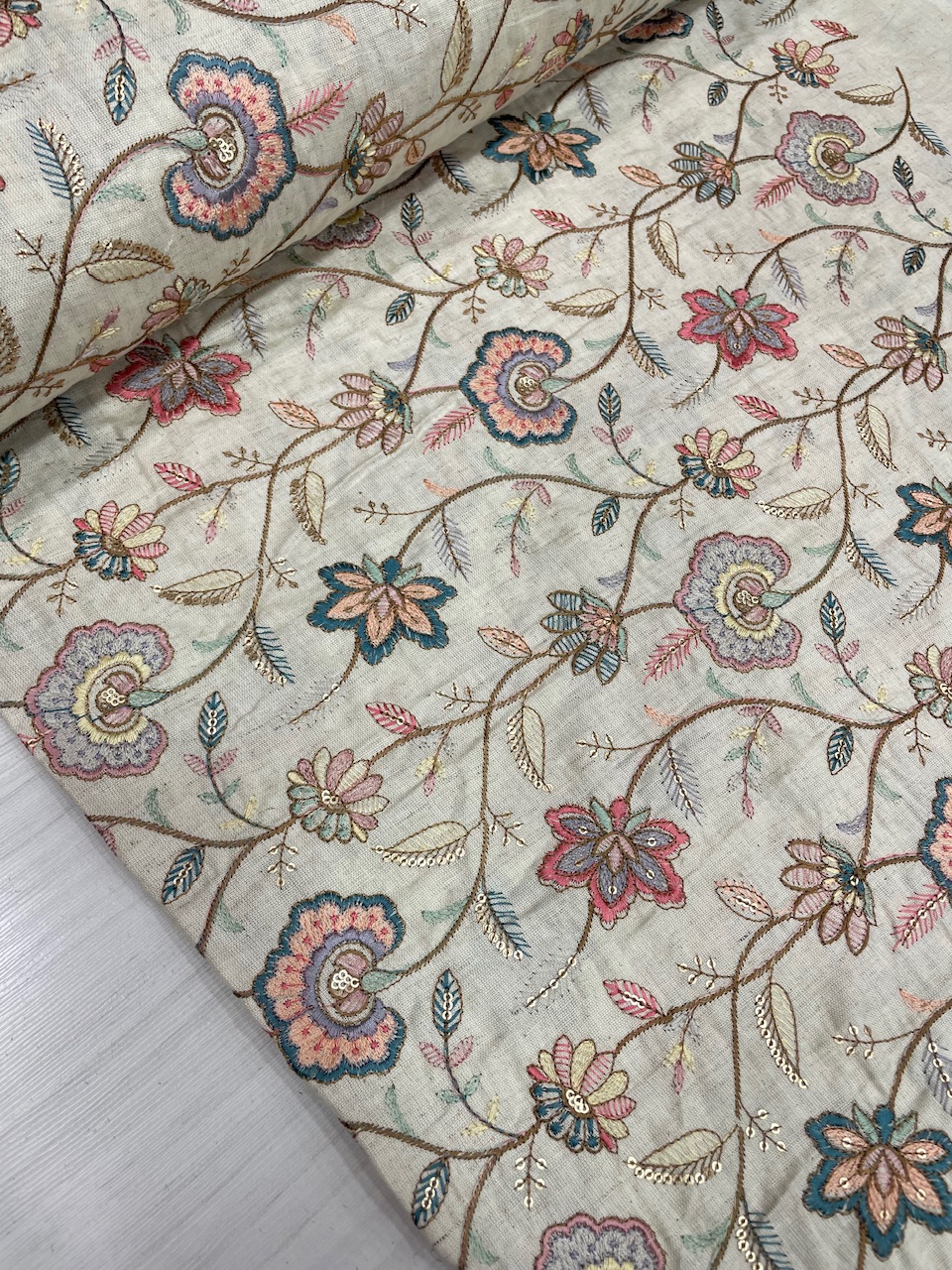 سوزندوزی های روی پارچه با تراکم بالا و نخ با کیفیت ابریشمی بافت شده و رنگ نخها واقعا شفاف و زیبا هست که نمای پارچه رو فوق العاده خاص و جذاب کرده است .