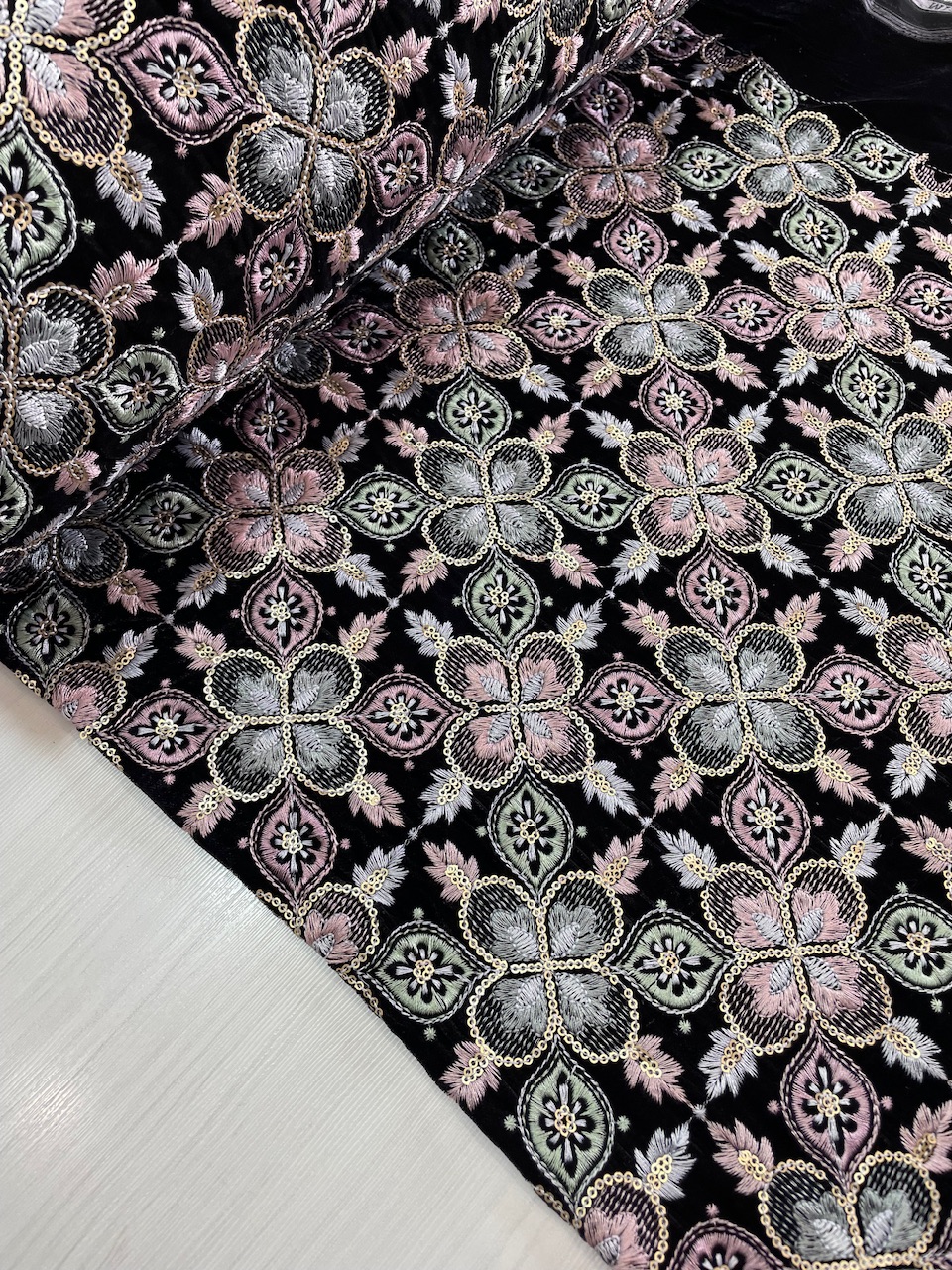 سوزندوزی های روی پارچه با تراکم بالا و نخ با کیفیت ابریشمی بافت شده و رنگ نخها واقعا شفاف و زیبا هست که نمای پارچه رو فوق العاده خاص و جذاب کرده است .
