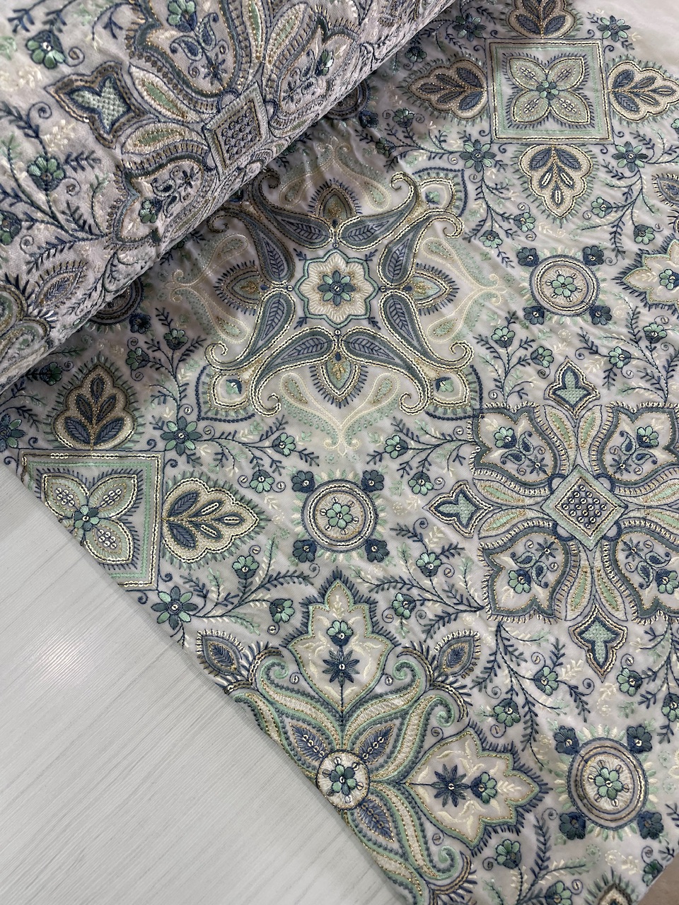 سوزندوزی های روی پارچه با تراکم بالا و نخ با کیفیت ابریشمی بافت شده و رنگ نخها واقعا شفاف و زیبا هست که نمای پارچه رو فوق العاده خاص و جذاب کرده است .
