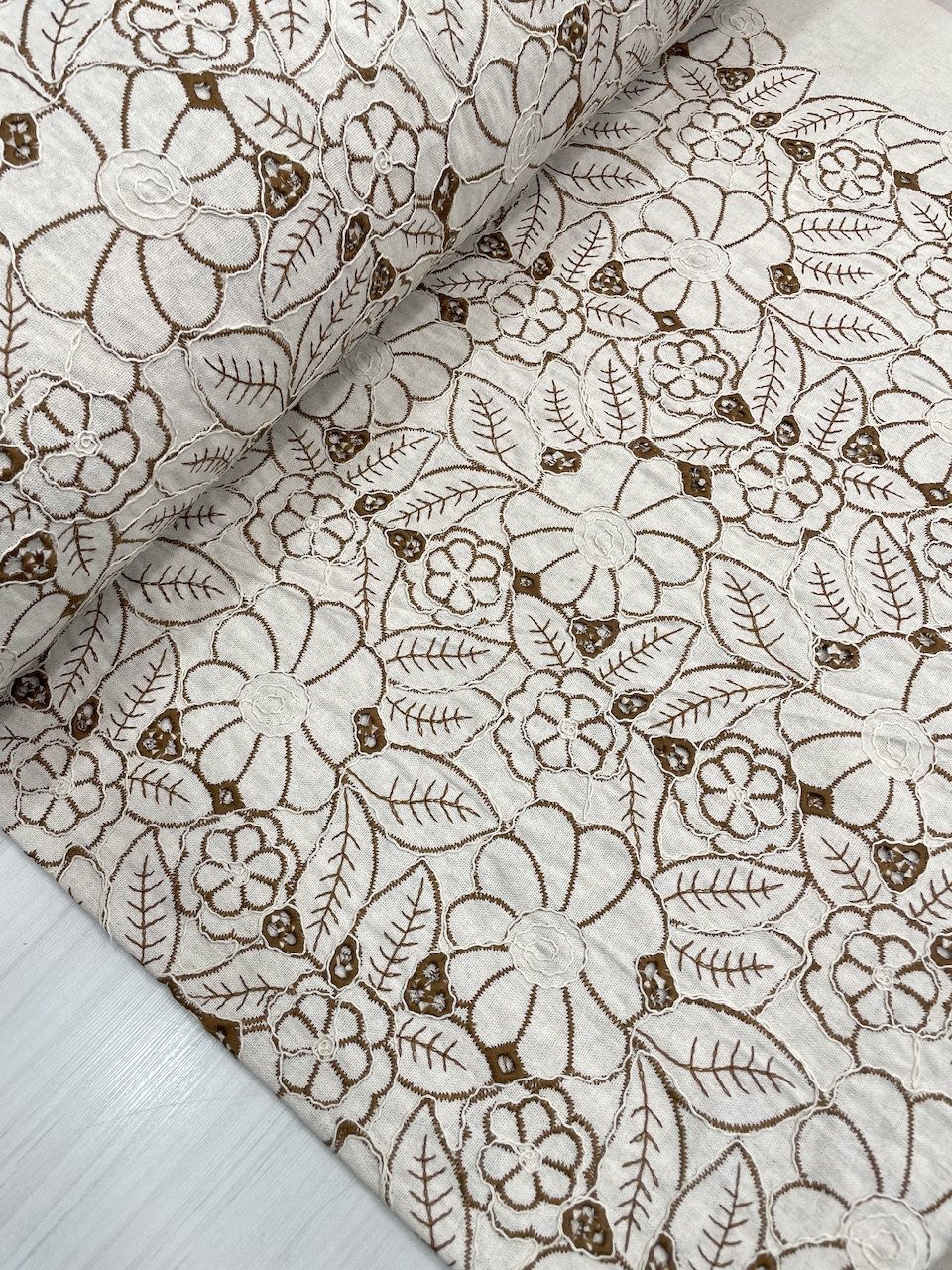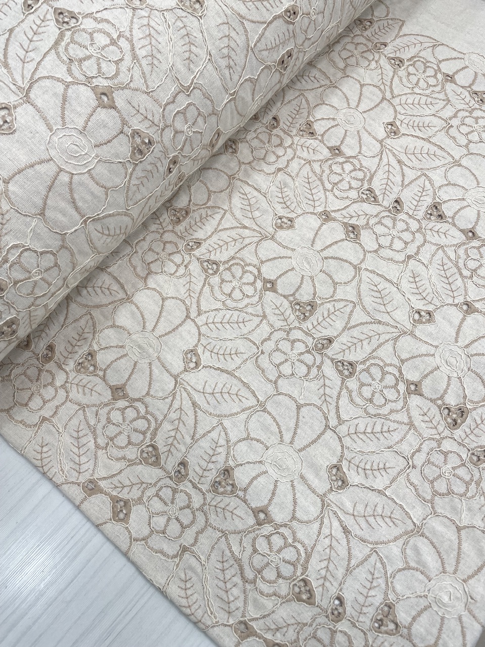 پارچه لینن خامه و قیطان دوزی